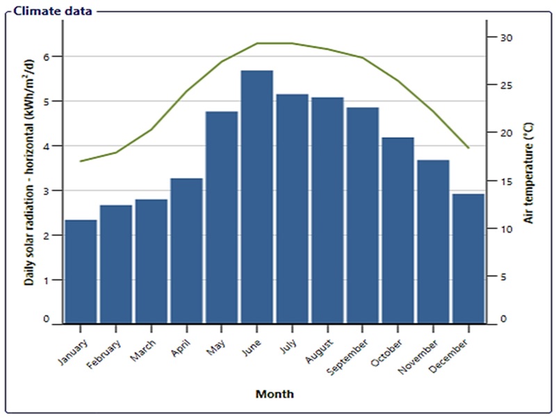 Theo nghiên cứu đăng trên Viện Xuất bản Kỹ thuật số Đa ngành (MDPI) – nhà xuất bản học thuật quốc tế, có trụ sở chính tại Thụy Sĩ, dữ liệu thời tiết trong các chương trình mô phỏng cho thấy thành phố Hà Nội có tiềm năng năng lượng mặt trời trung bình, với tổng bức xạ mặt trời trung bình năm khoảng 3,96 kWh/m2/ngày, tương đương gần 4 “giờ nắng đỉnh” mỗi ngày.