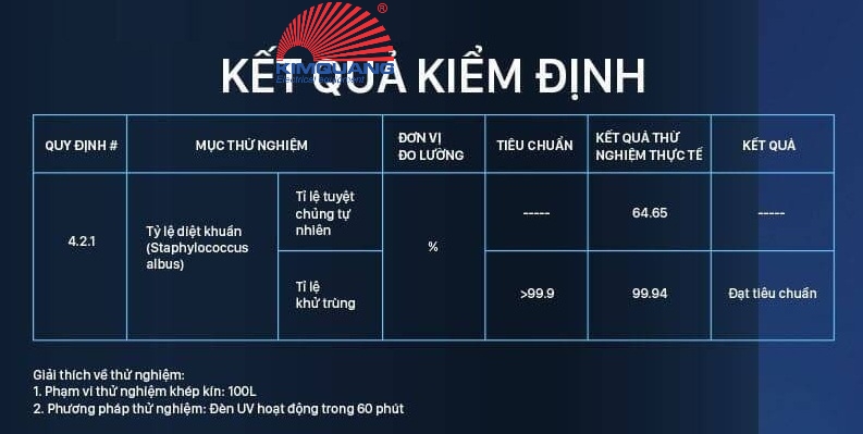 | Tỉ lệ diệt khuẩn | 99.9% |
